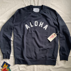 These nostalgic raglan sleeve sweatshirts are appliquéd with wool felt letters that are individually cut and then sewn on with a single needle sewing machine.The fleece is a Super-soft Mid Weight 8.5 oz. They arrive pre-washed ( no detergent ). The cotton broadcloth neck labels are handmade as well. Available in sizes XS thru 2X. Size specs can be found with the product detail photos.